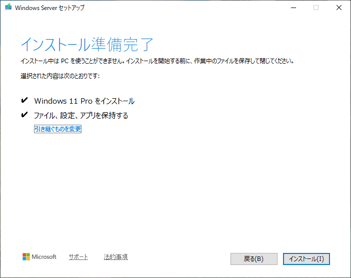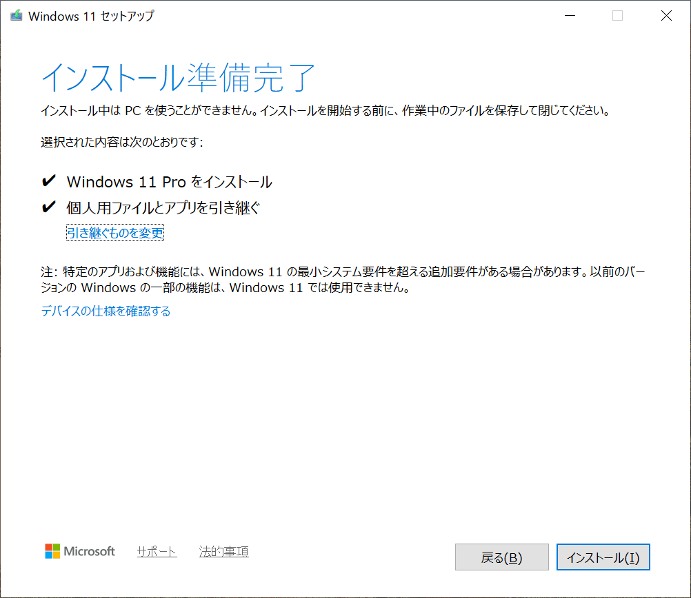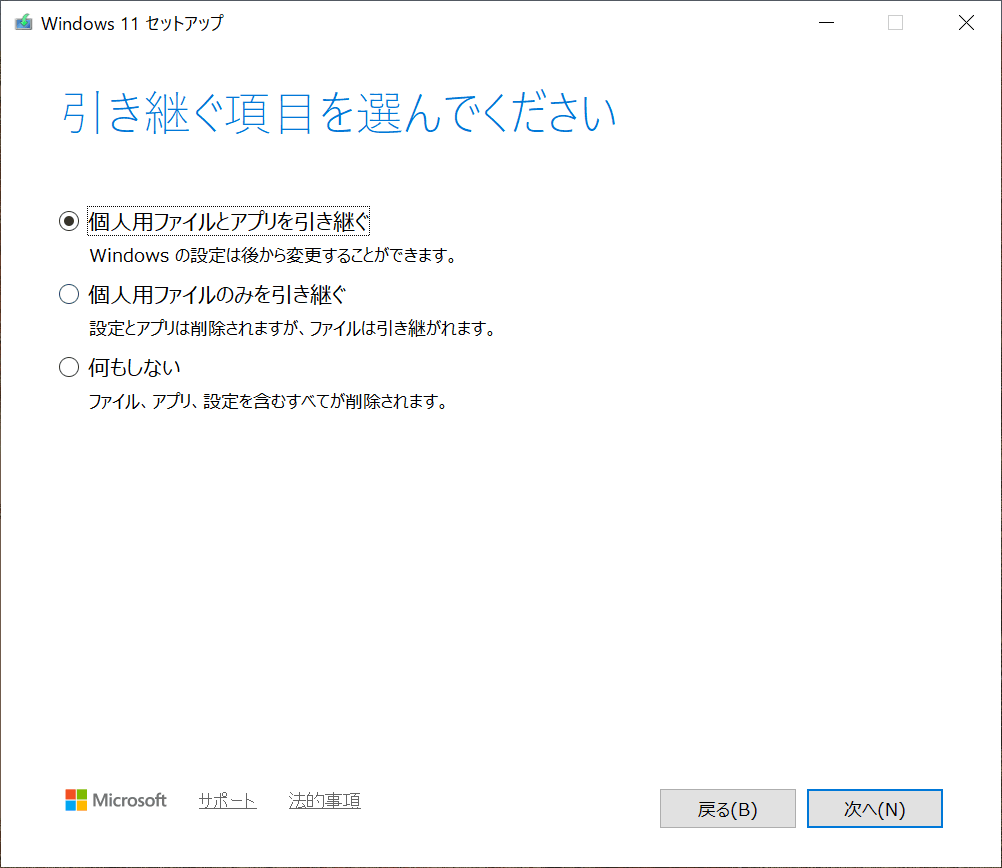 「引き継ぐものを変更」をクリックした場合 Rufusだと、補足があるのが面白いです。 ![]() | ↑「引き継ぐものを変更」をクリックした場合![]() |