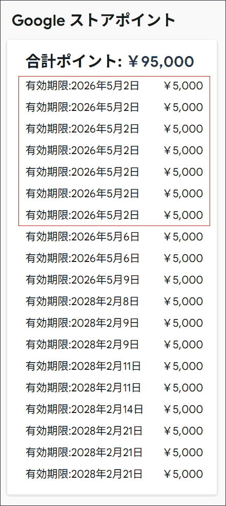 紹介キャンペーンにより以下のようにストアポイントを持っています。5月2日までに使わないと失効するため、なんらかのPixel製品を購入する必要があります。