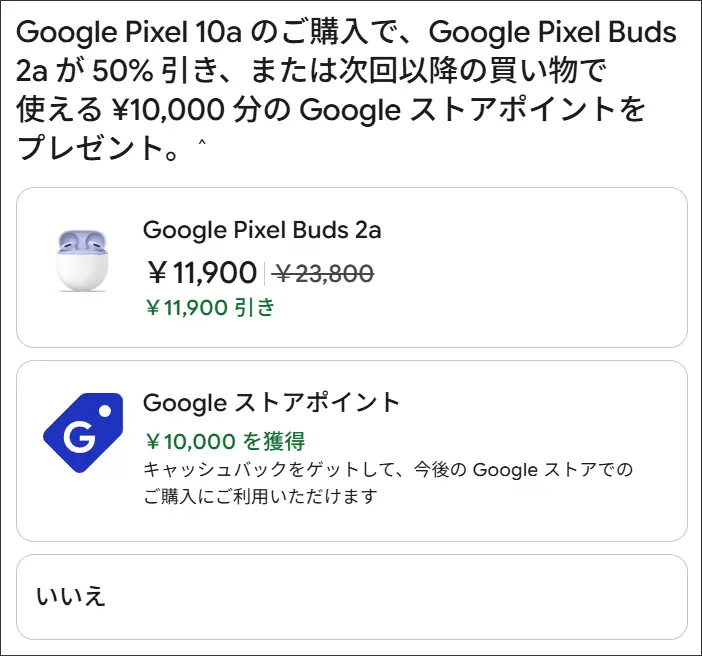 実はお得じゃない!Pixel 10a本体とPixel Buds 2aと同時に買うと50%OFF