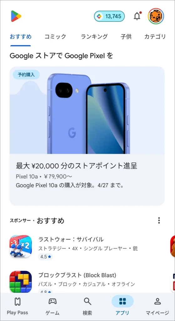 Pixel 10aの話題が無くなるぐらいPixel 10無印が安かったです!