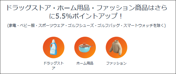 ドラッグストア・ホーム用品・ファッション商品はさらに5.5%ポイントアップ!