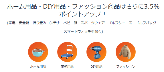 ホーム用品・DIY用品・ファッション商品はさらに3.5%ポイントアップ!