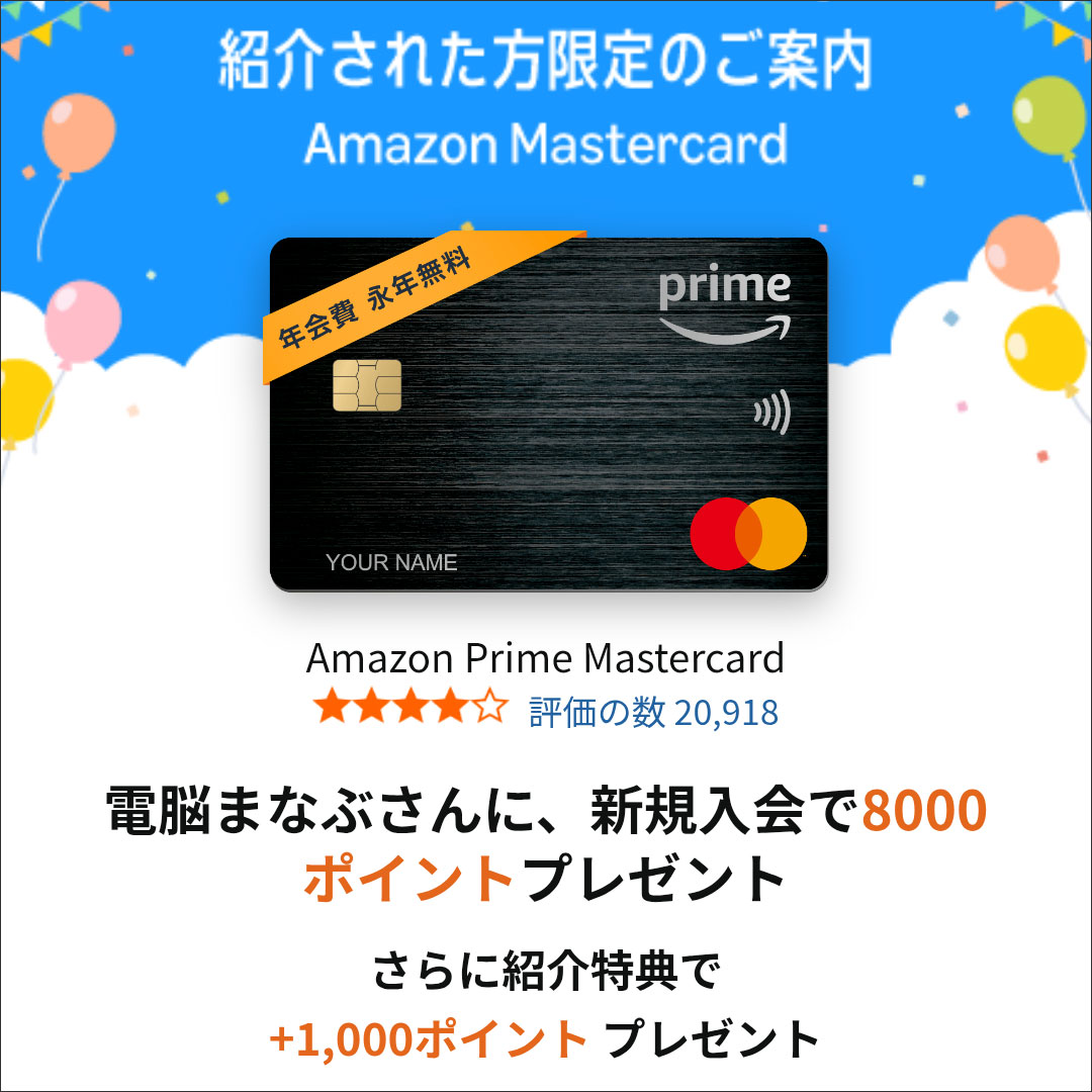 12月23日 (火) まで!Amazonカード新規入会で9,000ポイント!友達紹介キャンペーン