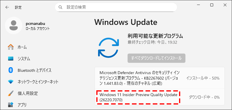 Windows 11 Insider Preview Build 26220.7070(Dev & Betaチャンネル)リリース