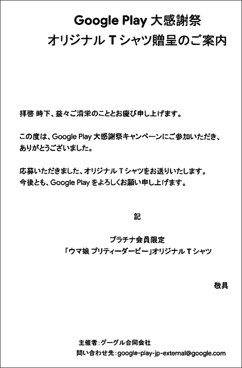 ウマ娘 プリティーダービー Tシャツが到着 Google Play 大感謝祭 2025