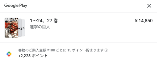 13500ポイントをGoogle Playにしてさらに書籍購入して2025ポイントゲット