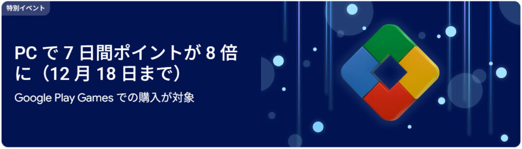 12月4日から18日にPC 版 Google Play Games で ポイ ント ブースタ ー を 有効 に する と 、7 日 間 、 す べ て の ゲー ム 内 購入 で ポイ