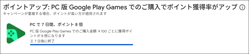 3日間限定 ポイントが5~8倍 : Google Play でのすべての購入でポイント獲得率がアップ