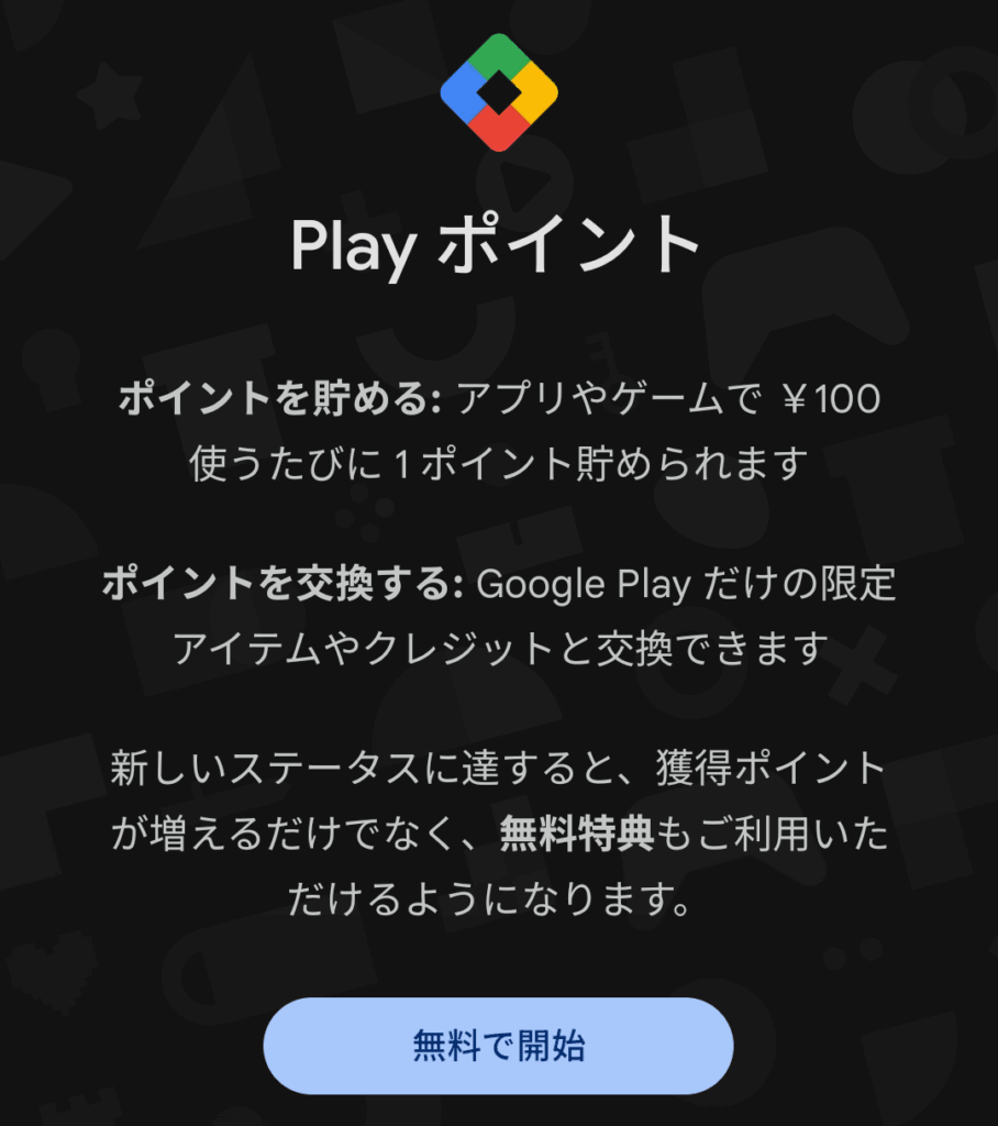 Google PlayアプリにアクセスするとPlayポイントへの入会が促されます。