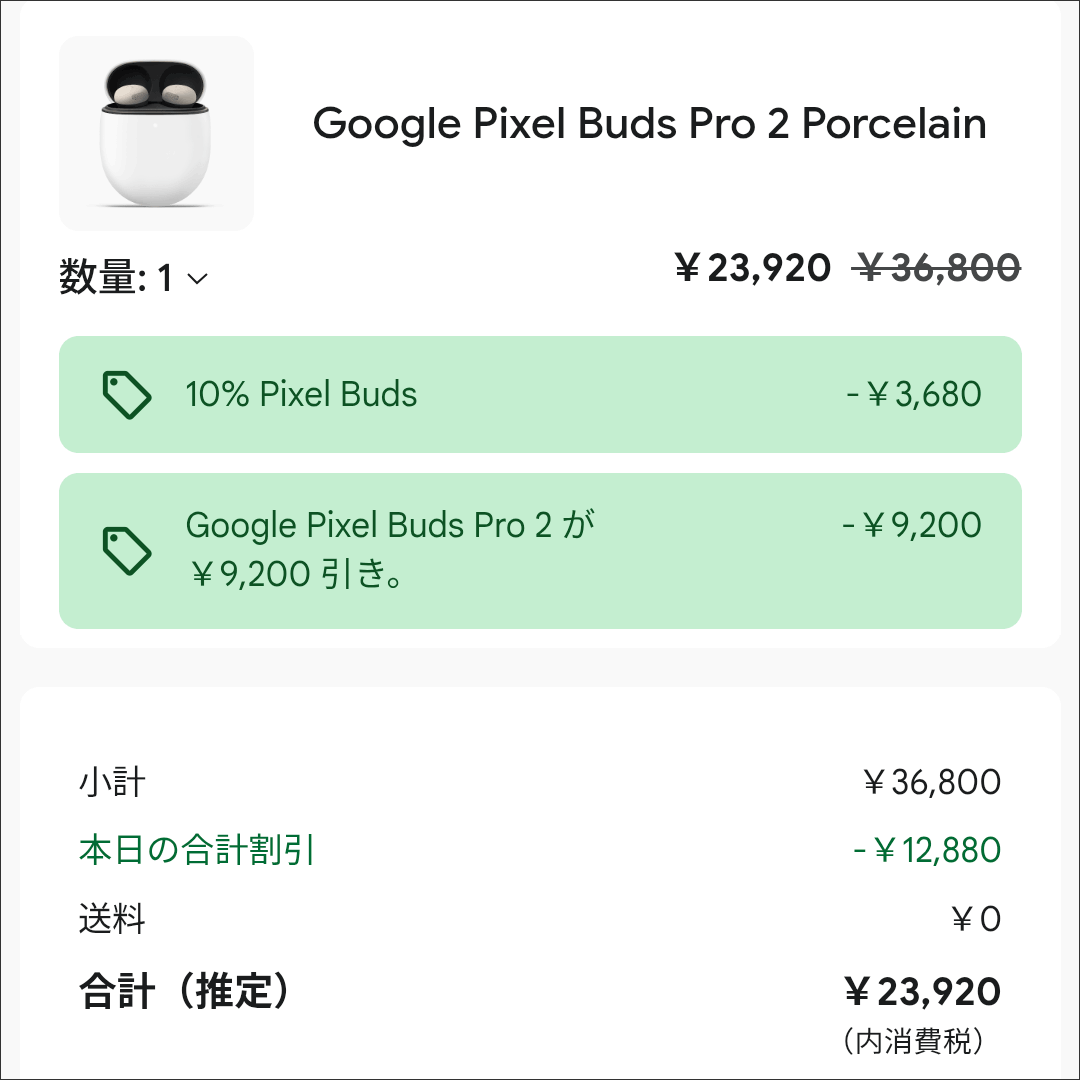 未来の予測はできませんが、定期的に40%OFFイベント開催していますし、ゴールドステータスでPixelスマホ2万円引きが2025年8月21日(木)から10月13日(月) 15:59まで実施しています。