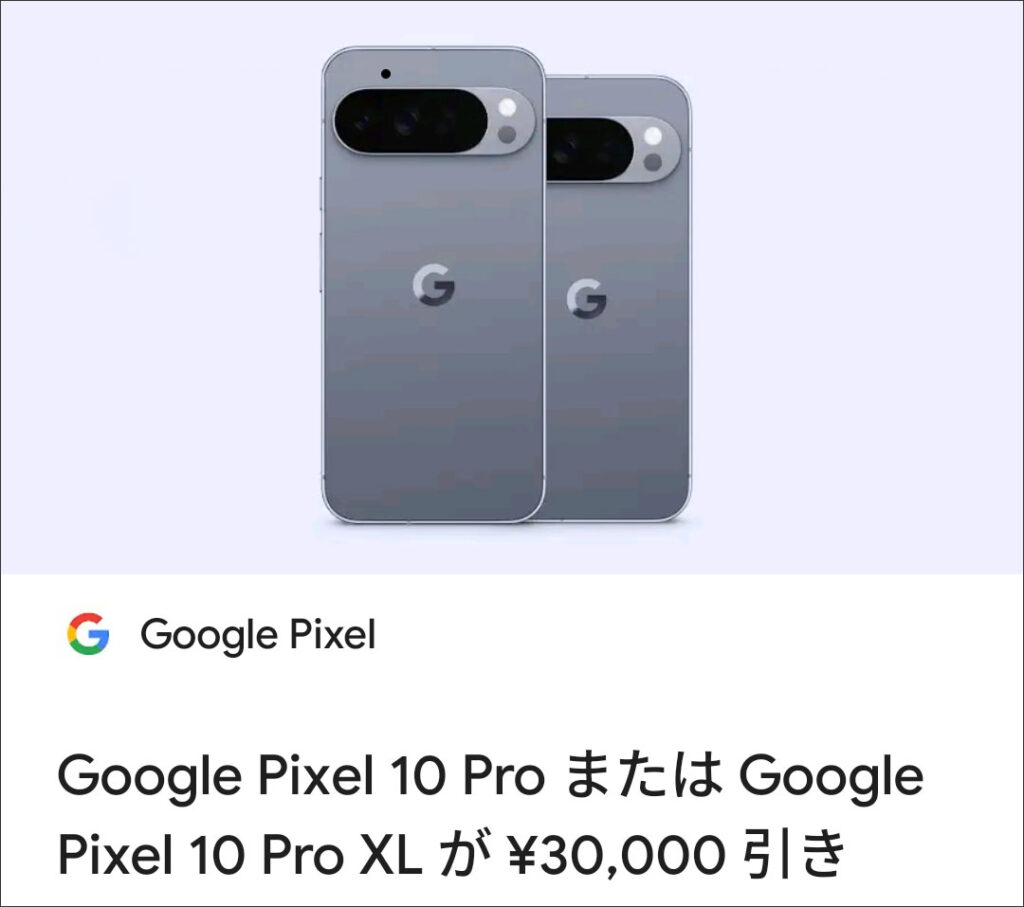 Google Pixel 10 Pro また は Google Pixel 10 Pro XL が30,000円 引き