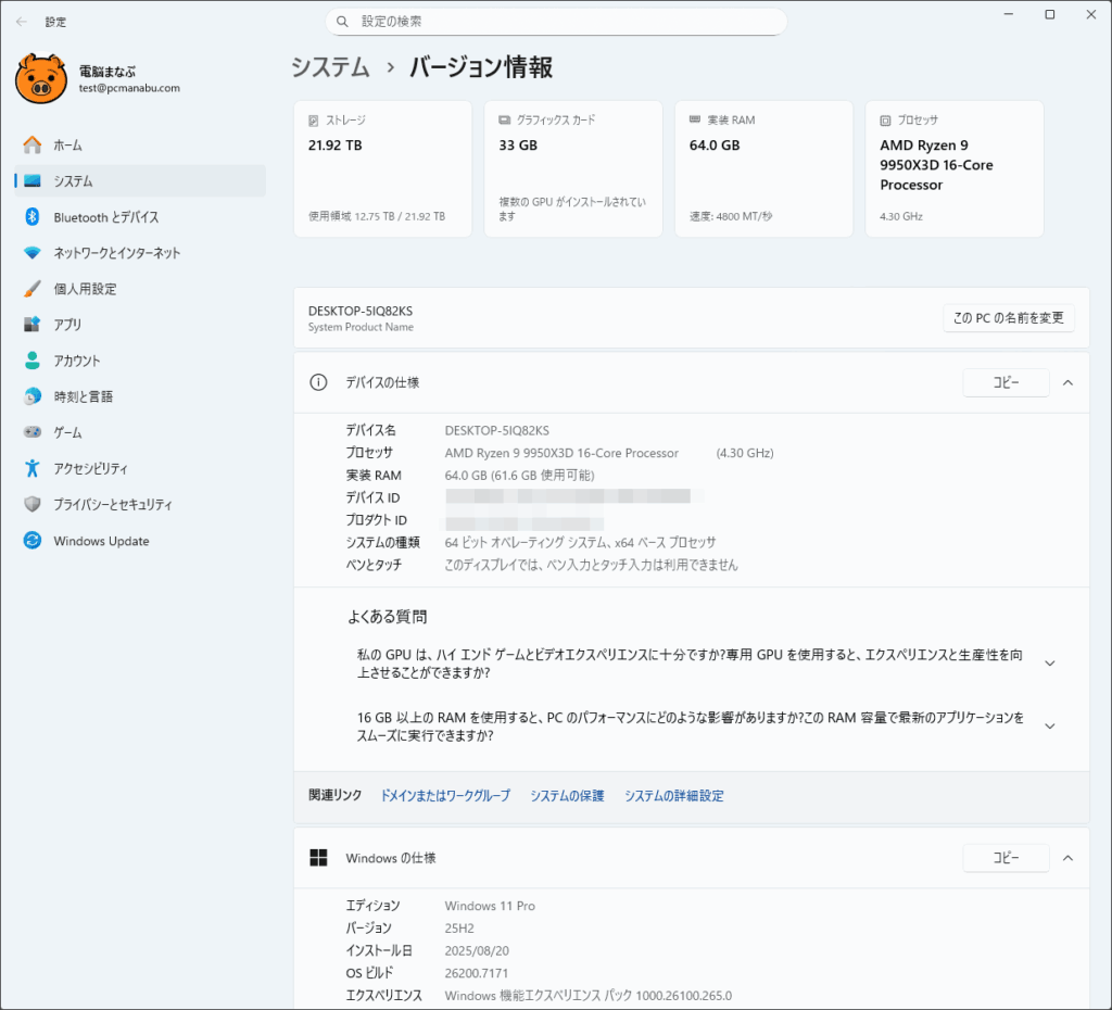 キーボードを1回押すだけで己の環境やお客様の環境を確認できます。