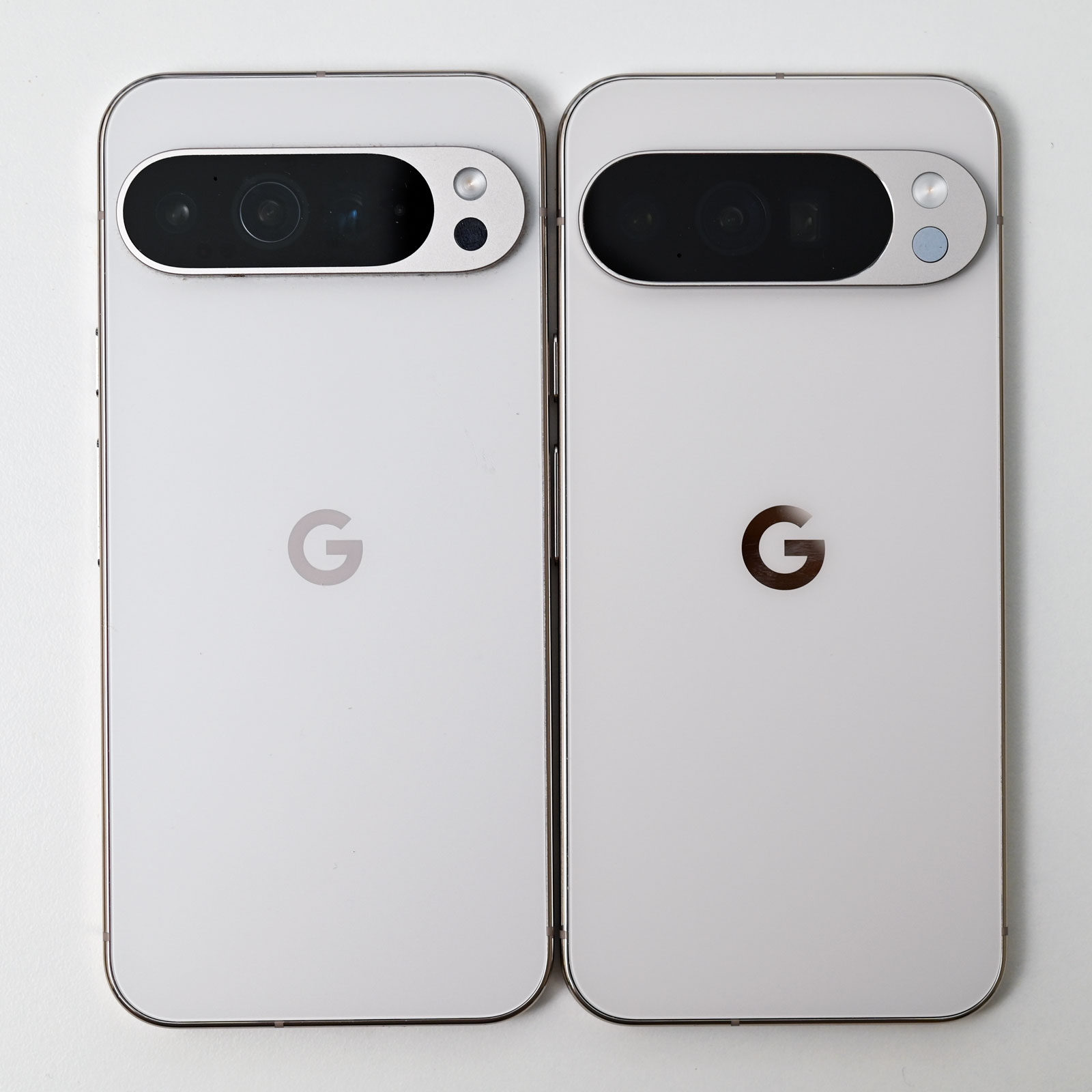 左がPixel 9 Pro XL。右がPixel 10 Pro XLです。実物を見ると違いが分かります。