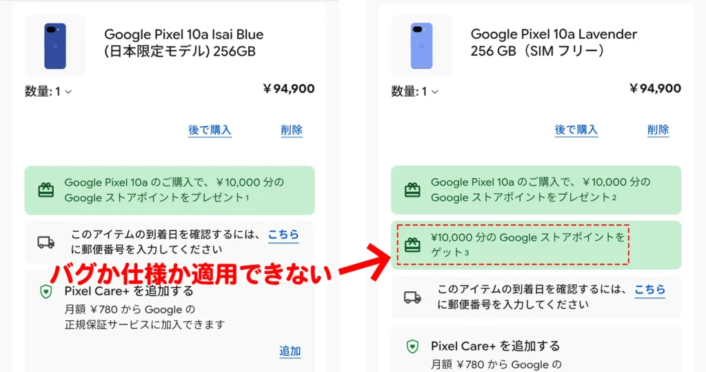 本クーポンを他の色の256GBには適用できますが、「日本限定 Google Pixel 10a: Isai Blue」には適用できません。