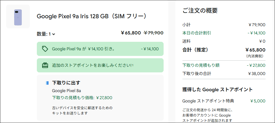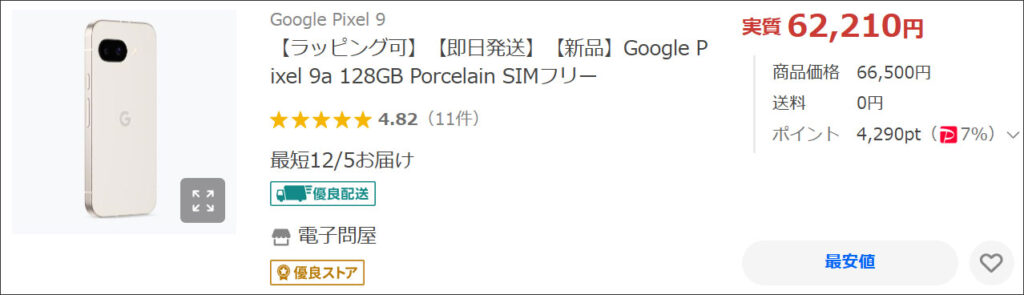 Pixel 9aが楽天で実質6万円未満!Google ストア以外も安い