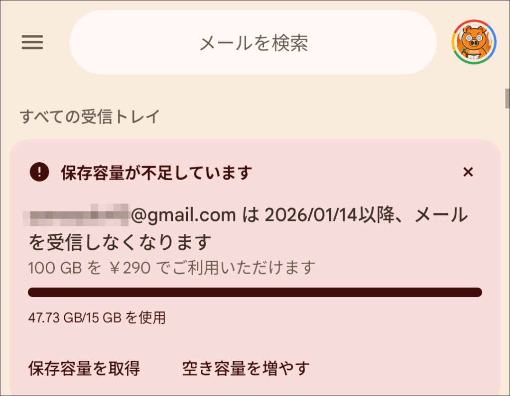 私は、Pixel 9 Proシリーズを2台持っているので1年間無料で利用しました。Pixel 10 Proシリーズも2台買い替えたので、さらに1年間無料で利用します。以下のようなメッセージが表示されたら、半年間の無料プランに申し込んで延長してください。