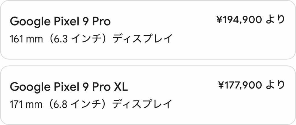 余談ですが、Pixel 9 Pro シリーズは価格が高くなぜかPixel 9 Pro XLの方がPixel 9 Proより安いです。Pixel 10 Proシリーズよりお高いです。