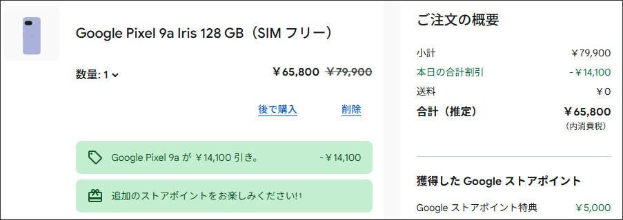 Pixel 8aを下取し、Pixel 9a購入の場合 実質30,010円