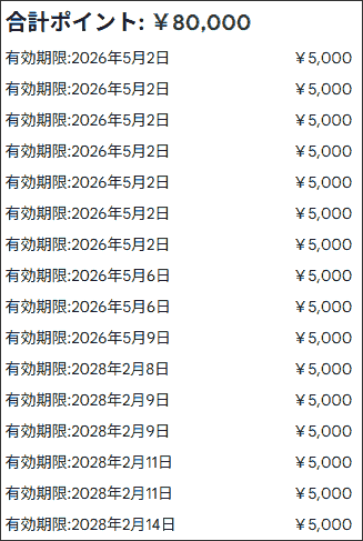 あと15,000ptは補充されます。5000ptは返却されて無効。