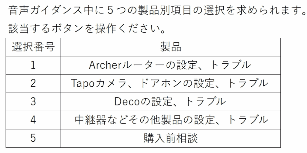電話サポートでは家庭用機器のみ対応しております。法人製品はメールサポートをご利用ください。