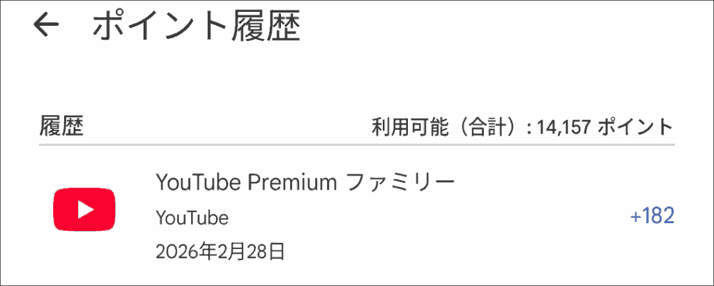 ダイヤモンド会員向けにポイント8倍イベントを実施していたため、8倍でYouTube Premiumを更新しました。ほんのちょっとした作業で182ptもらえるのは嬉しいです。