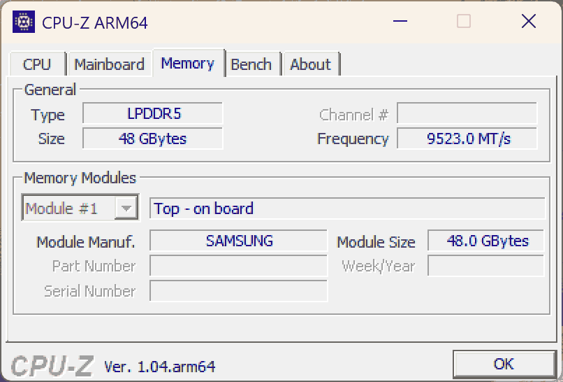 メモリはオンボード 48GB LPDDR5X-9523